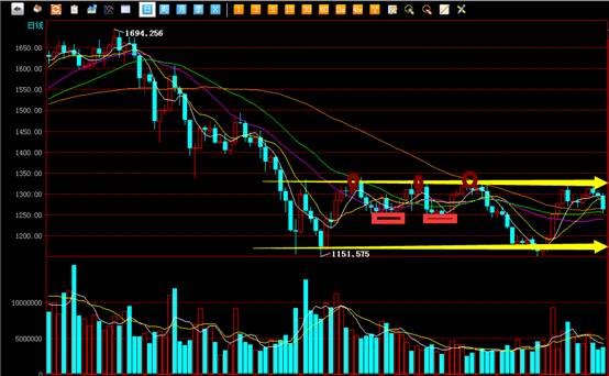 技术指标分析:均线整体上呈现的依然是多空转换的形态,K线在均线内来回穿越,目前的行情形成再次下跌走势,所以目前市场依然是低位震荡的行情。成交量方面今日比昨日略微增多,目前来看市场信信心不足,所以暂时应以观望为主。