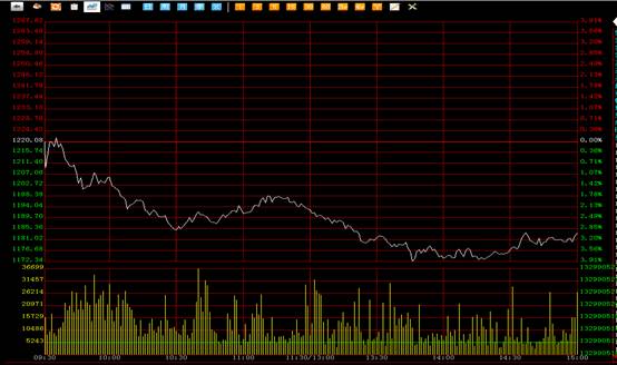 南方所综合指数技术形态分析:综合指数技术形态上依然是下跌的行情,盘中市场强力下探并且连续创出新低,最低点一度到达1172.36点,全天强势下挫,价格始终低位震荡全天无任何反弹迹象,收盘后日线呈现一个大阴线。