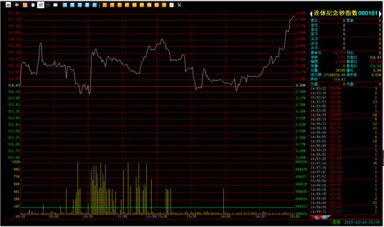连体钞板块全天震荡走高,从分时图看到指数全天基本在红盘区运行,下午2:30分后指数出现一波急速拉升。截止收盘指数报收317.25点,轻微上升2.83点,上涨幅度0.9%,成交额为2710.8万元,成交量基本持平。对于目前行情建议投资者可适度参与,并实时关注钱邮官网每天的“信息”发布,截止至29号收盘钱邮中心总共发出了7批锁仓名单和一个手续费调整的公告。鉴于手续费调整实施时间逼近(16年元月1日始),连体钞板块属于直接受益群体,投资者可密切留意成交量的配合。