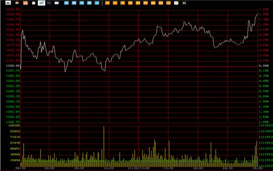 南方所综合指数今日开盘1269.65点,上涨17.29点,涨幅1.36%,换手率4.20%,最终收盘1286.94点。今日开盘后即展开小幅上涨,最高涨到1282点,但是随即震荡下跌并且跌破开盘价,一度下探到1265点,至10:56分后市场展开震荡上升的态势,直至收盘价格不断创新高并且始终维持在高位。尾盘半小时拉升力度大,动能足,明显是主力行为充分证明主力拉升意愿强烈,广大投资者可积极操作。