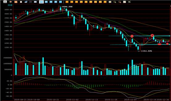 后期的风险管理策略:上方技术点位依然建议大家关注1334.00点,因为在8日到达此点位后市场即开始强力下挫,并且一路下探不断创出新低,21日在此点位又再次强力下挫,直至25日才开始反弹,充分证明此点位压力巨大,所以后市到达此点位后如出现停顿可逢高出货。下方技术点位建议大家关注1239.28点,因为12月24日,到达此点位后开启了强力反弹昨日在此点位更是强力拉升,所以此点位是一个坚固的支撑点。