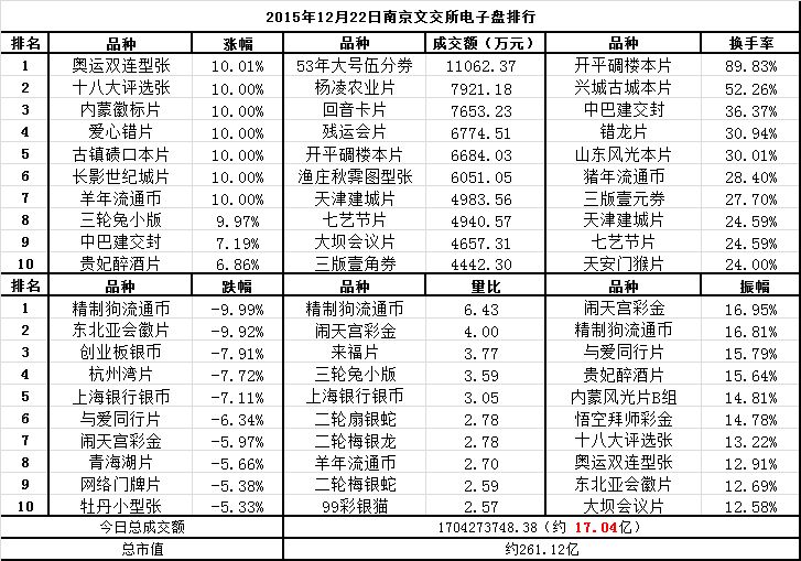 南京文交所电子盘2015年12月22日排行