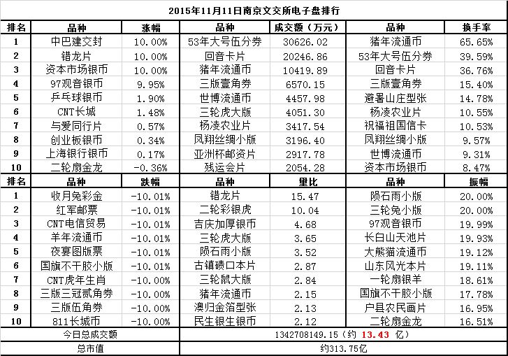南京文交所电子盘2015年11月11日排行