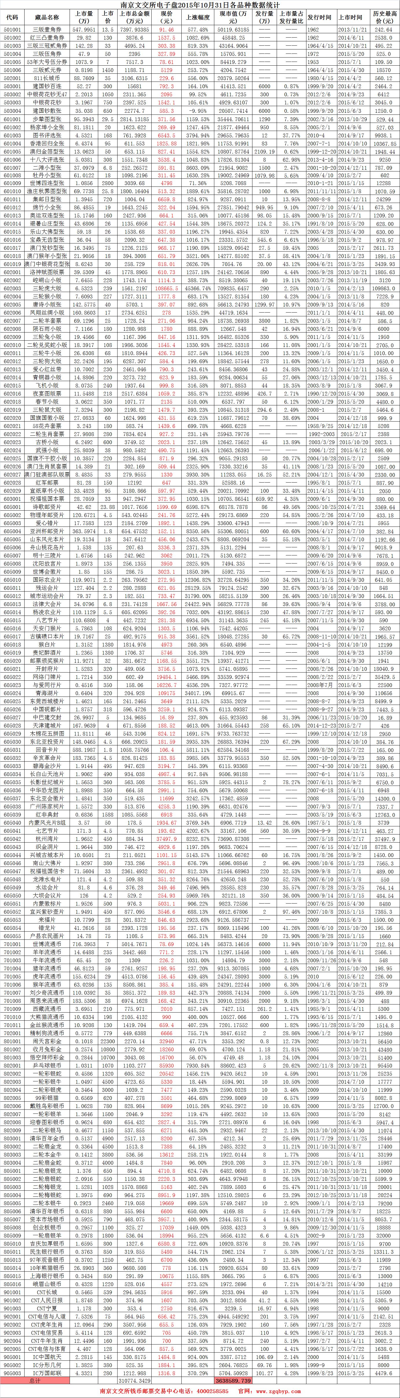 >> 南京文交所电子盘2015年10月31日各品种数据统计