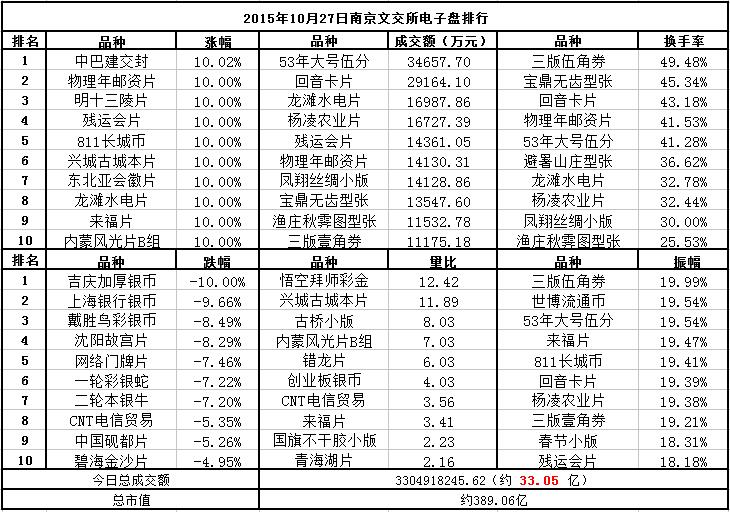 南京文交所电子盘2015年10月27日排行