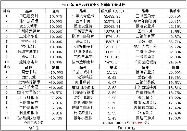南京文交所电子盘2015年10月22日排行