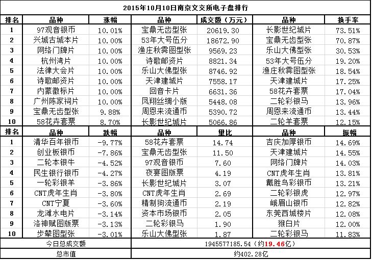 南京文交所电子盘2015年10月10日排行