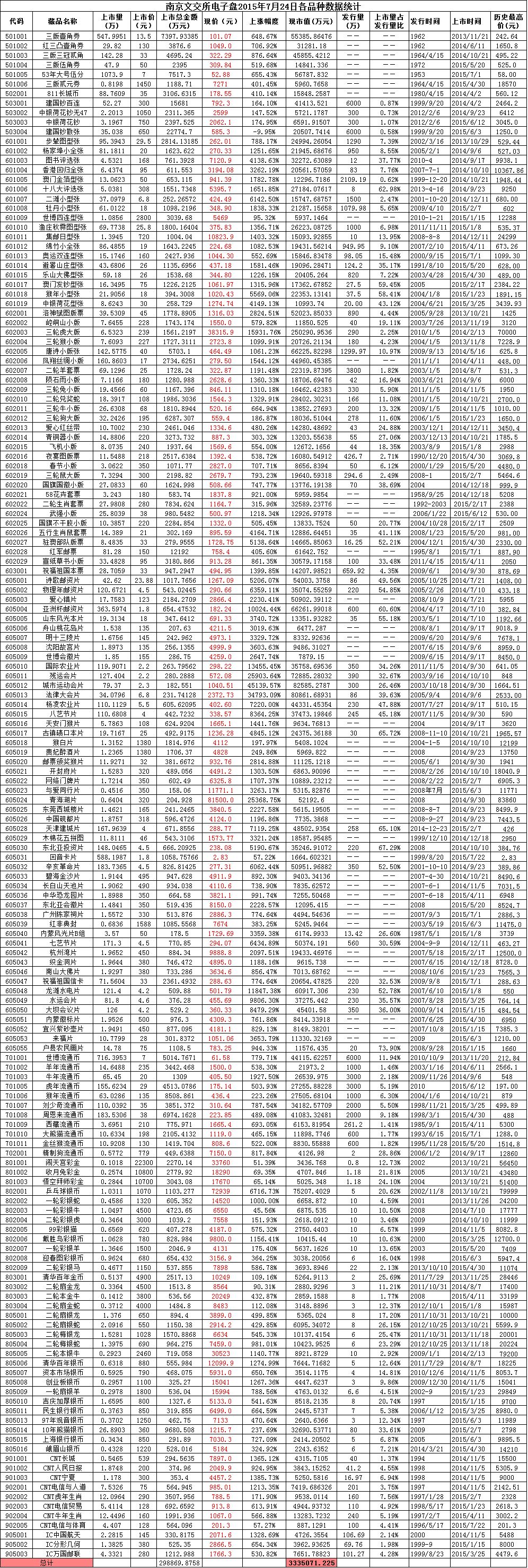 南京文交所电子盘2015年7月24日各品种数据统计