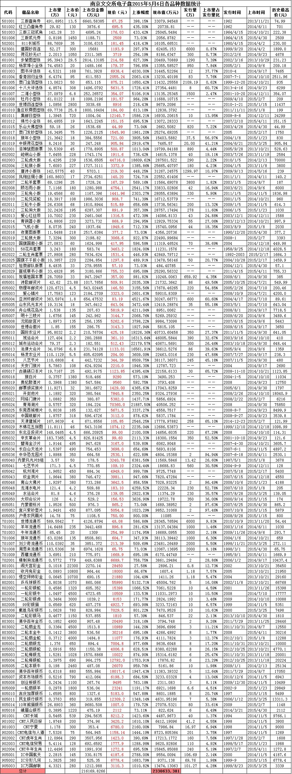 >> 南京文交所电子盘2015年5月6日各品种数据统计