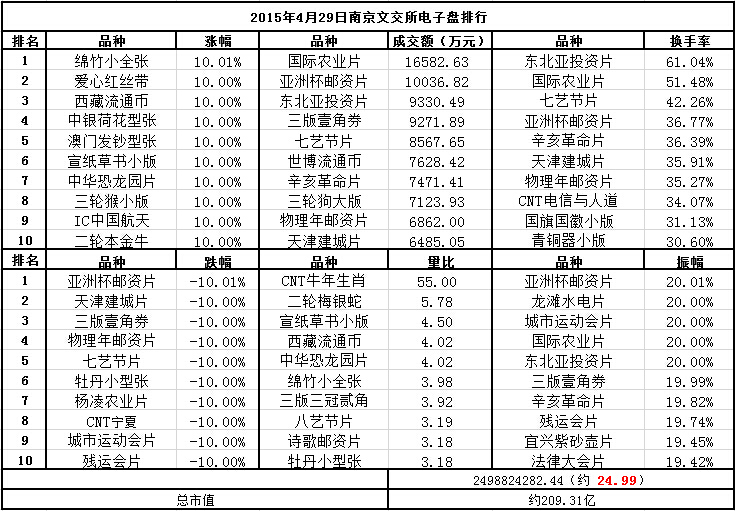 南京文交所电子盘2015年4月29日排行
