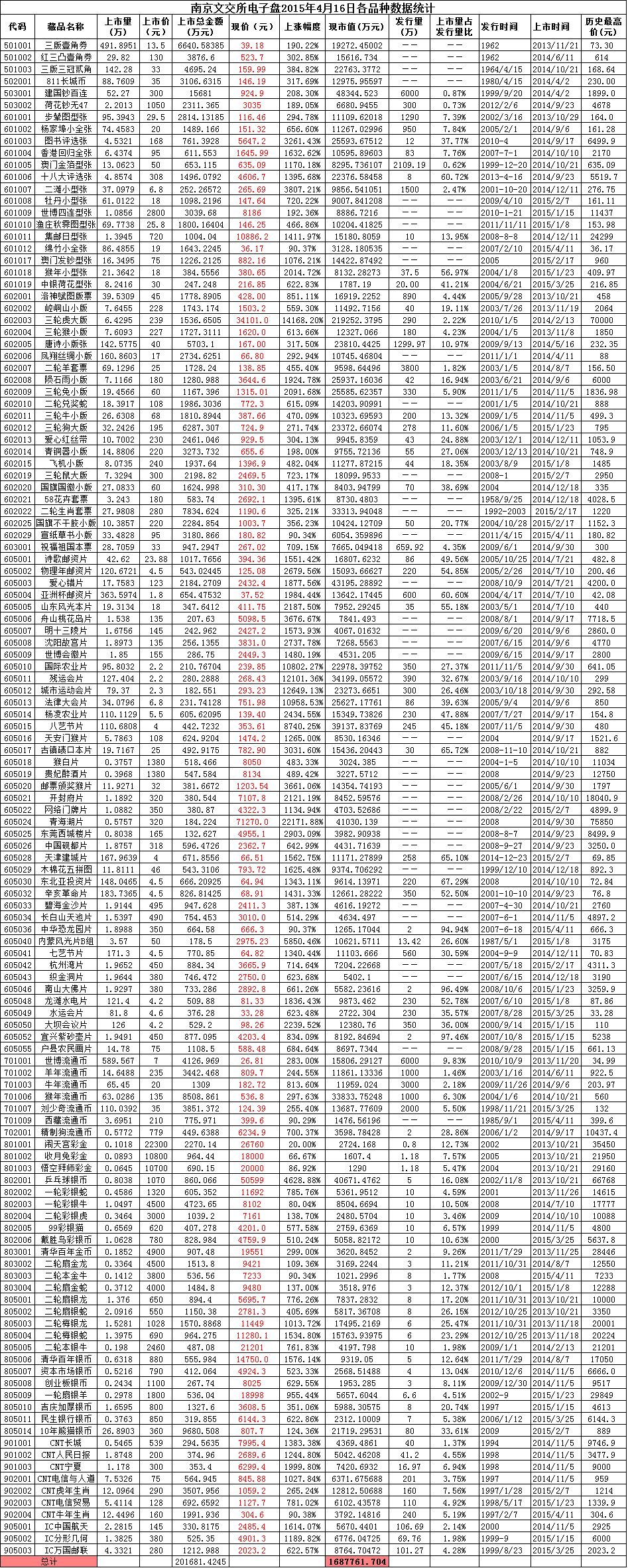 >> 南京文交所电子盘2015年4月16日各品种数据统计