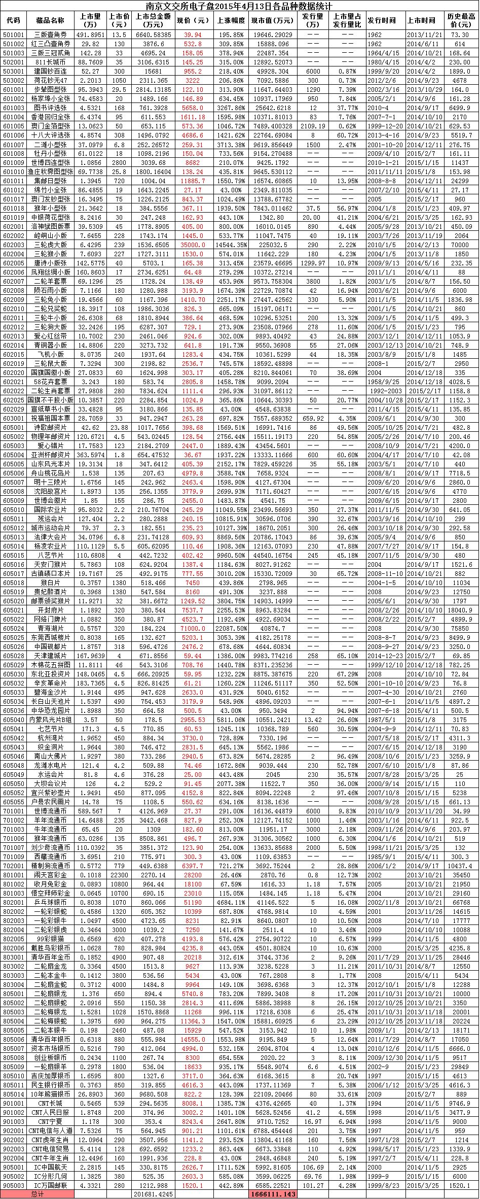 南京文交所电子盘2015年4月13日排行