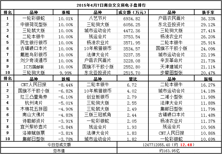 南京文交所电子盘2015年4月7日排行