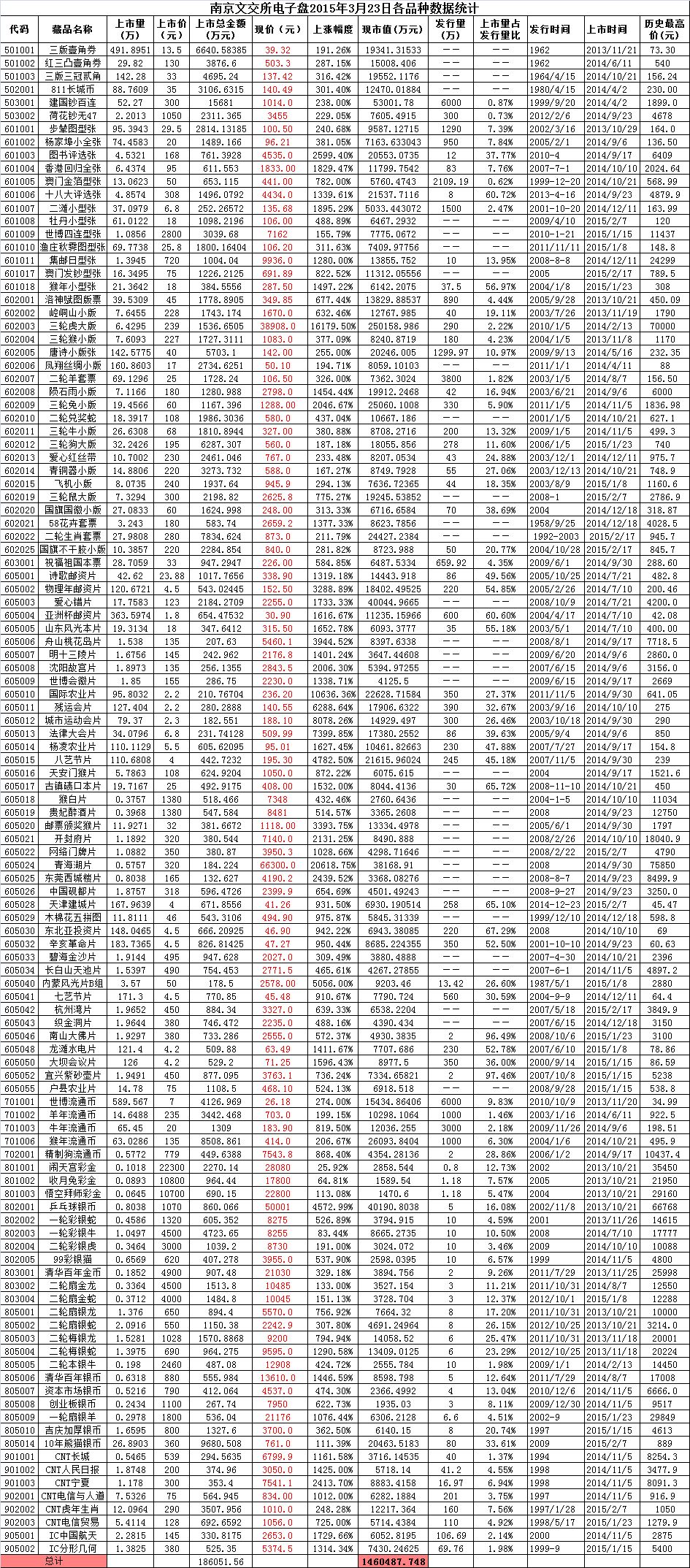 南京文交所电子盘2015年3月23日排行