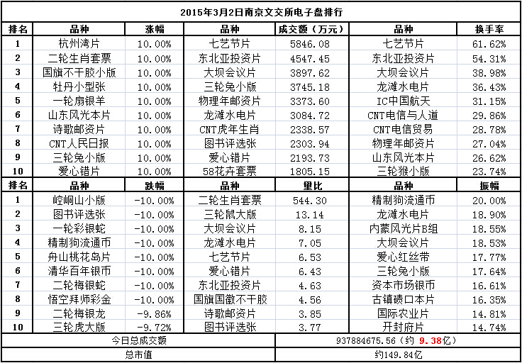 南京文交所电子盘2015年3月2日排行