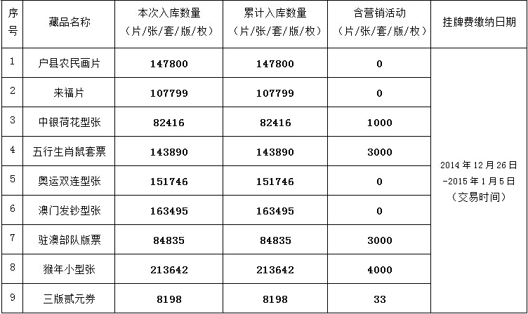 本中心受普通投资人会员申请,于2014年11月28日至12月12日组织相关机构对申请人所递交之藏品在指定地点进行专业鉴定,具体内容公告如下: 1、本次鉴定入库藏品清单: