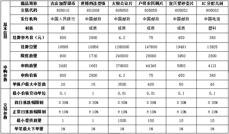 六、中签公布日,交易中心将公布申购当日参与某一藏品申购的所有投资者的申购数量,以及参与某一品种申购的总资金量。