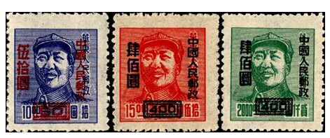 “华东区三一版毛主席像邮票”加字改值 |