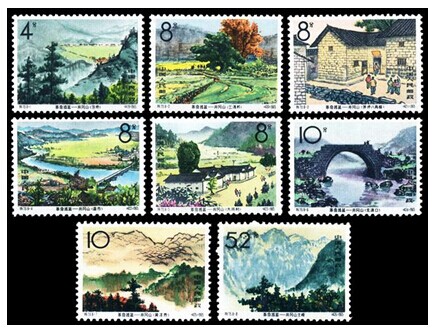 1965年7月1日,适逢党的生日,邮电部门发行”革命摇篮——井冈山特种邮票,编号特73,全套8枚,分别展现了人民军队摇篮、革命圣地——井冈山“茨坪”、“三湾村”、“茅坪八角楼”、“砻市”、“大井村”、“龙源口”、“黄洋界”的绮丽风光和“井冈山主峰”的巍巍雄姿,使人们禁不住对其产生无限的缅怀之情。