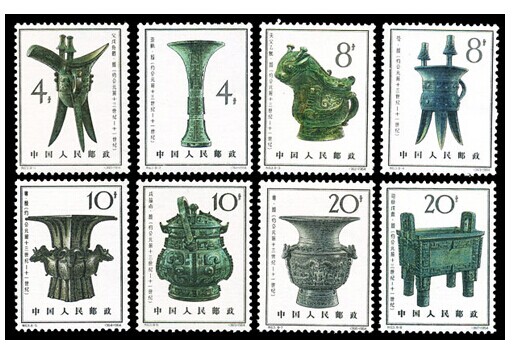 我国冶铜技术在原始社会后期已经发明,殷代是我国青铜发展史上的第一个高峰,邮电部发行这套《殷代铜器》特种邮票,以8只铜器代表和展示我国古代青铜艺术的辉煌成就。
