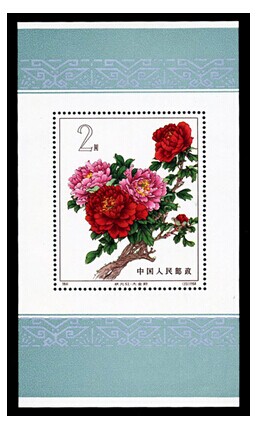 1964年8月5日,中华人民共和国邮电部在发行特61《牡丹》特种邮票的同时,发行了1枚《牡丹(小型张)》。采用中国当代著名花鸟画家田世光创作的原画。卢天骄设计。影写版。齿孔11.5度。背面刷胶。北京邮票厂印制。