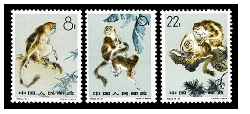 1963年9月25日,我国邮电部发行“金丝猴”特种邮票,编号特60,全套3枚,并同时发行了无齿孔票。三枚邮票图案是由中国著名画家刘继卣创作,金丝猴的头部和背部色彩同红狐一样,四肢和尾部都是淡灰色,胸部是白色,有一双圆而黑的眼睛。脸是蓝色,鼻子上翻,背部两侧有两组淡黄色的长毛。