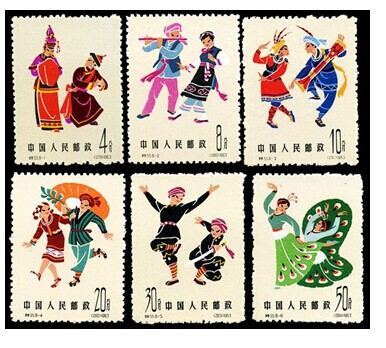 “中国民间舞蹈”(第三组)特种邮票,1963年6月30日发行,是中国民间舞蹈系列的最后一套,全套六枚,6幅画面均为我国画家倪常明创作的原画。