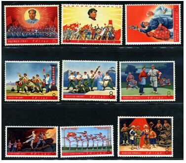 1968年1月30日和5月1日,为了宣传和推广现代戏剧,中华人民共和国邮电部发行一套《毛主席的革命文艺路线胜利万岁》“文”字头邮票,全套9枚。其中(1)~(6)于1968年1月30日发行,(7)(8)(9)于1968年5月1日发行。