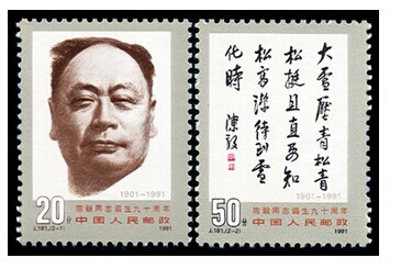 1991年8月26日,邮电部发行“陈毅同志诞生九十周年”纪念邮票,编号J181,全套两枚。