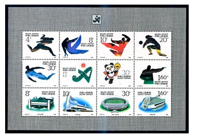 1990年北京亚运会共发行了J151、J165、J172三套纪念邮票,这在新中国邮票史上可以说绝无仅有。当然,精华之笔还是J172M小全张,通过把三套邮票内容打乱穿插,设计出适合小全张表现的布局,主题突出,格调新颖,使人赏心悦目。