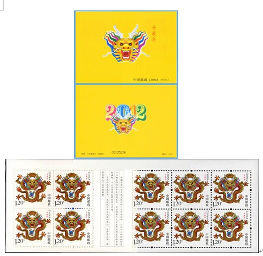 2012-1《壬辰年》龙(T)邮票于2012年1月5日发行,1套1枚,面值1.2元,采用六角形齿孔,特种防伪纸张,加密荧光防伪油墨,荧光防伪喷码。同时发行小本票一本。2012年第三轮生肖“龙”票,设计者刻意凸显了一个刚猛有力、威严自信的龙的形象。