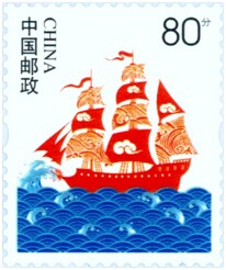 (4-1)图名:一帆风顺 面值:80分 邮票规格:25×30毫米 齿孔度数:13度 整张枚数:25枚(不干胶品种) 整张规格:150×260毫米 设计者:北京盛行京华广告有限公司