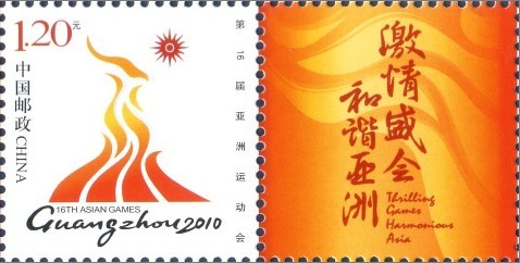 2009年12月25日发行《第16届亚洲运动会会徽》个性化服务专用邮票1枚。
