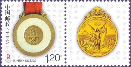 为纪念中国体育代表团勇夺第29届奥林匹克运动会金牌,中国邮政于我国运动员获得金牌48小时后即时发行金牌运动员个性化邮票。