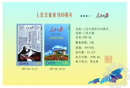 【藏品名称】:CNT-46《人民日报创刊50周年》