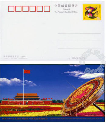 【藏品名称】:《祝贺2004北京国际邮票钱币博览会圆满成功》普通邮资明信片