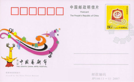 【藏品名称】:JP146《第八届中国艺术节》纪念邮资明信片