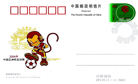 【藏品名称】:JP120《2004年中国亚洲杯足球赛》纪念邮资明信片