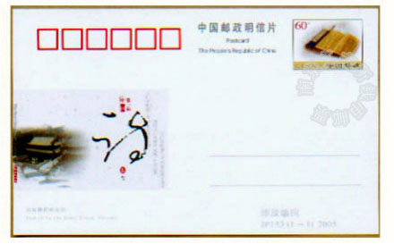 《诗歌邮资片》在图案上选用诗仙李白的《望天门山》、太白楼,邮资图为《唐诗三百首》古书图案,既点既面,相互映衬,布局自然洒脱行云流水,自然吐出几丝雅韵。