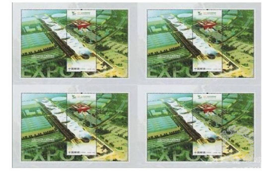 2010年1月21日是中国上海世博会倒计时100天,纪念发行特种邮票,邮票分别展现了世博园的建筑,“一轴四馆”,它们作为上海世博会园区最重要的景观区域永久保留。是新中国邮票第一枚邮小型张四连体的形式发行。
