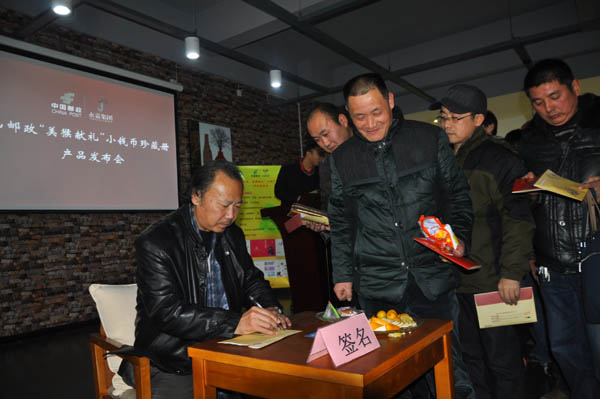 近日,江苏省徐州市铜山邮政“金猴献礼”小钱币珍藏册新品发布会在徐州举行。徐州市知名画家赵海昉应邀参加发布会,并亲笔签售珍藏册。中国邮政、永嘉集团领导和收藏界人士共50余人参加发布会。