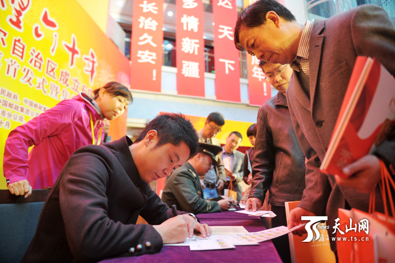 10月1日上午,《新疆维吾尔自治区成立纪念邮票首发式暨集邮展览开幕式在乌鲁木齐举行。