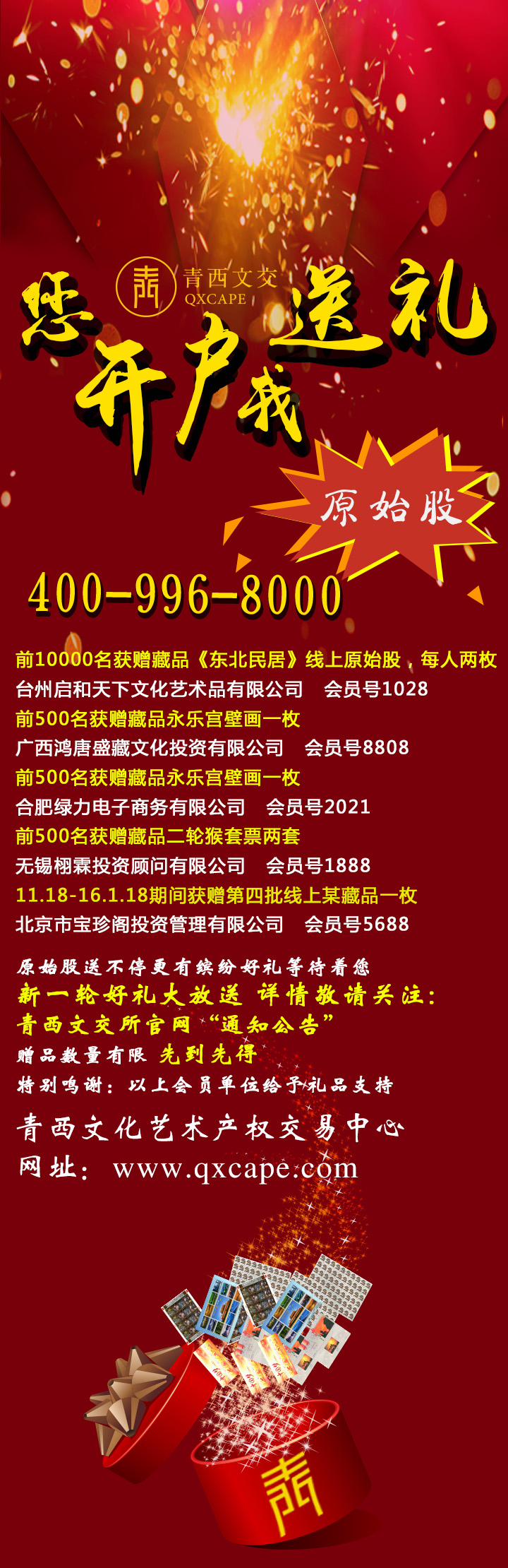 虽然寒冬将至,但是我们的豪礼不降温,为感谢并鼓励更多投资者参与邮币卡投资,共同创造财富,青西文交所的多家合作会员单位从青西文交所上线交易至今积极开展了一系列财富分配活动——“开户送大礼”!