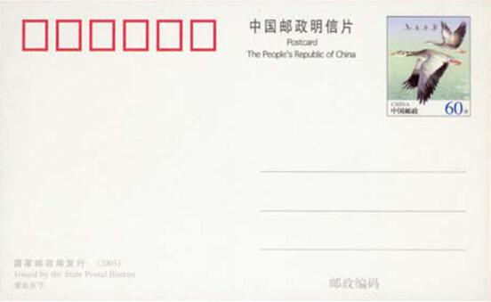 鸿雁作为传达信使的别称,始出“雁足传书”的典故。《信达天下》普通邮资明信片取材于诚信达布于天下之意,明信片邮票图案设计美观,主色调选取绿色,与邮政色调保持一致。邮资图上几只凌空展翅的飞燕,仿佛携带着重要书信,正在努力奋飞,这借用了中国流传的“飞雁传书”典故,整体构图饱满有序,色调温润,极富艺术感染力。2004-2006年世界邮政日的宣传主题是“情系万家,信达天下”,以此作为各国政府和邮政共同追求的目标。