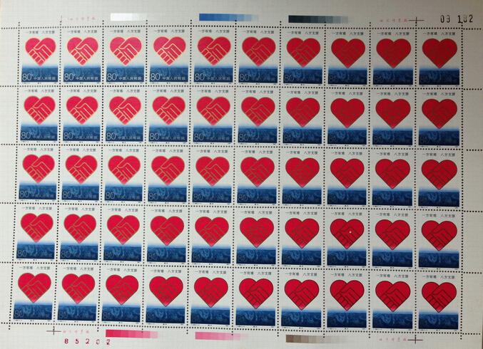 邮票设计者精心地在“一方有难,八方支援”八个大字的下面,两只刚强的手紧握,构成一颗红心。表达了中国人民在中国共产党的英明领导下,以大无畏的英雄气概和高尚的道德情怀,表达了社会主义制度强大的凝聚力和感召力,激励着人们去奋斗、去奉献。