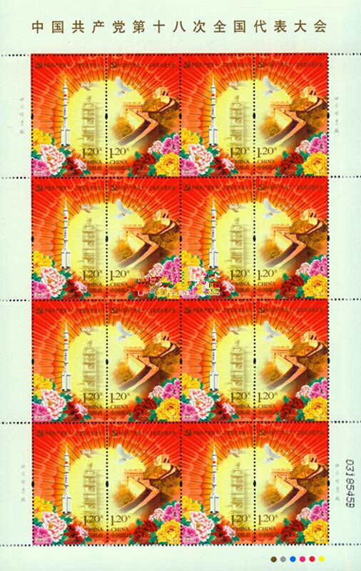 “喜迎十八大,方寸展辉煌”,为了迎接中国共产党第十八次全国代表大会,中国邮政于2012年11月8日发行《中国共产党第十八次全国代表大会》邮票1套2枚。