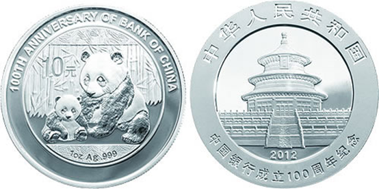 【简 介】:中国银行成立100周年熊猫加字银币于2012年4月26日由中国人民银行发行,为中华人民共和国法定货币。