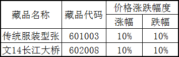 关于《传统服装型张》等藏品恢复价格涨跌幅度的公告