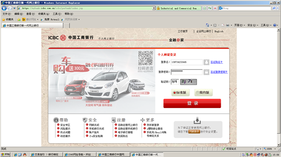 2、输入网银用户名/卡号,登陆密码,验证码进行登陆。