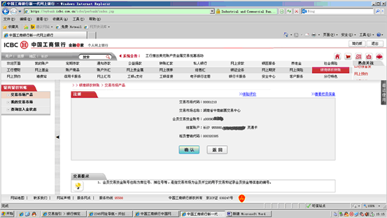7、签约后,输入“会员交易资金帐号及账号密码”,选择在工商银行开立的结算帐户。